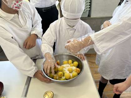 なかよしタイムで、梅干し作り、あんずシロップ作りをしました。