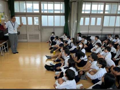 教頭先生に、平和学習の授業をしていただきました。大阪空襲があった、80年前の6月7日11時頃。ちょうど同じ時間に空襲警報を聞きました。