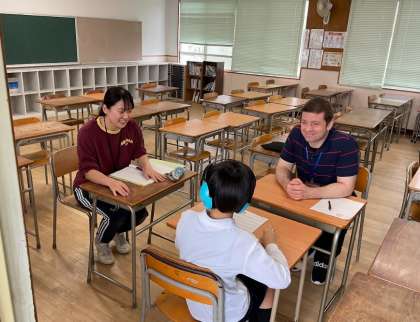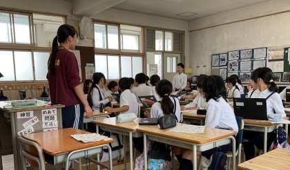 今日の外国語の授業は、スピーキングテストです。シェーン先生にちゃんと伝わったかな?