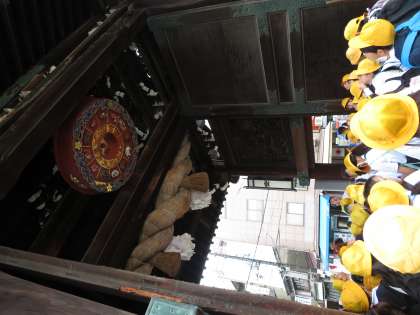 大阪天満宮では、神社の歴史や天神祭りについて、神職の方からお話を聞きました。