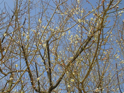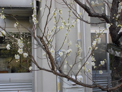 敷地内の、正門を入って玄関右側(給食室前)と、運動場の奥(うんていの後ろ)の2本の木が咲いています。