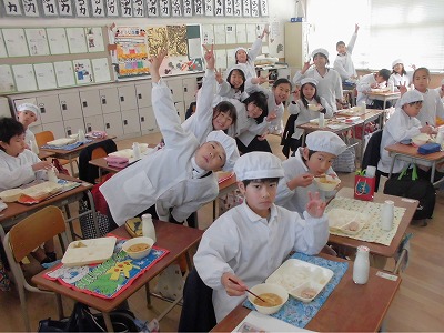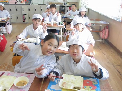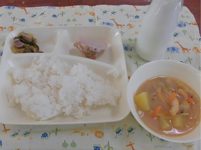 今日は、砂糖の入ったしょう油だしに豚肉も入れて、煮びたしにしていたので、子どもたちも喜んで、おいしくいただいていました。