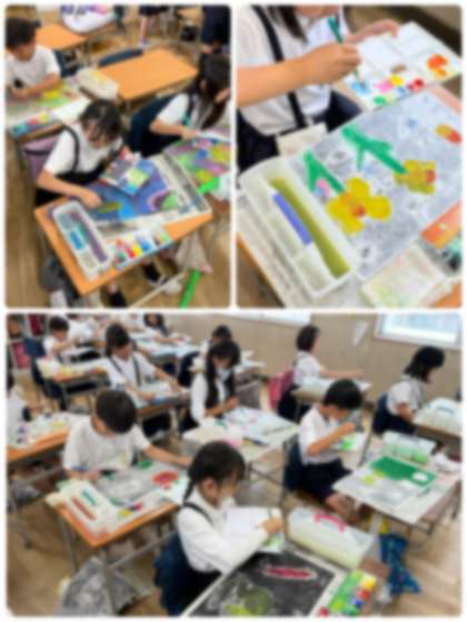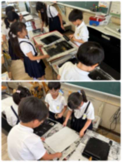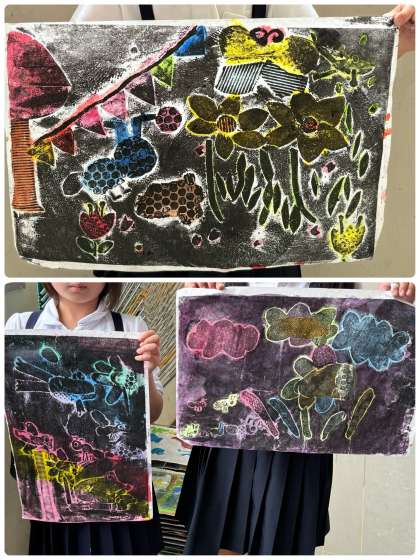 すてきな彩色版画が完成しました(3年生・図工)