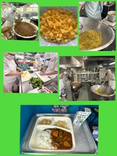 夏野菜カレーは、夏野菜のかぼちゃ、なす、ピーマンなどを使用しています。
