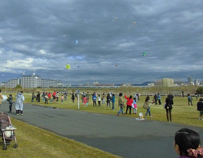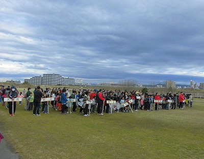 2月14日(日)の午後1時半から、淀川の河川敷で第20回目の東淀川区子ども凧あげ大会が開催されました。