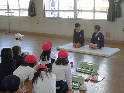 音読、運動(マットになわとび)、合唱・合奏、落語・小ばなしなど、盛りだくさんのプログラムです。金曜日の参観にはカメラ・ビデオは必携です。