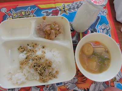 「ツナっ葉炒め」は、ツナ缶と大根の葉っぱをサラダ油で炒めた後、料理酒としょう油で味がつけられていました。ご飯に混ぜていただきました。