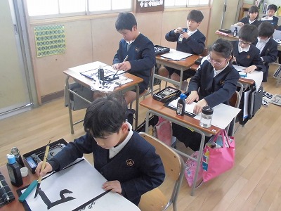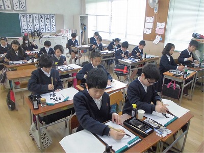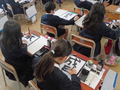先生の説明を聞き、止め、払い、はね、大きさ、バランスに気をつけながら何度も繰り返し練習をし、清書に臨んでいました。