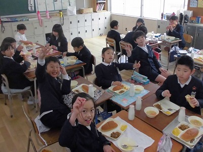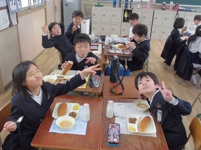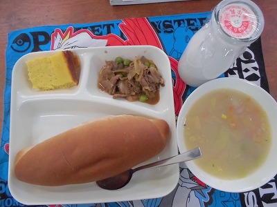 「コーンスープ」も、子どもたちには人気のスープです。コーンにベーコン、大好物です。今日は野菜として、白菜とニンジン、彩りにパセリが入っていました。