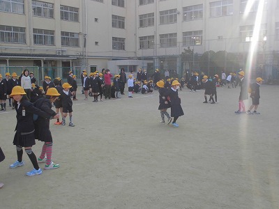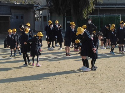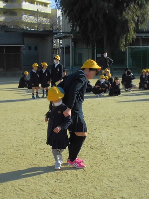 1年生と6年生のペアでは、かなりの身長差となります。1年生の首元に6年生の腰付近とかなりアンバランスな状態で運んでいました。スピードアップしてカニさんのように横歩きができません。