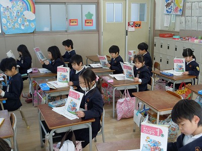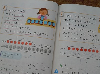 教科書に青い紙の数を●で塗りつぶしていくのですが、子どもたちの様子を見ると、