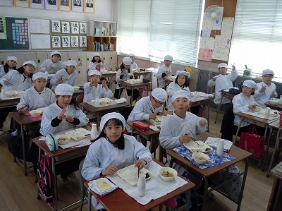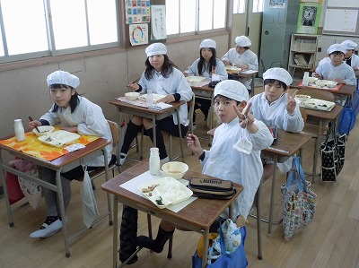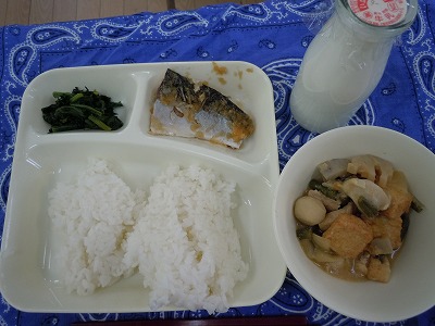 「サバのおろし醤油かけ」は、さばをしょうが汁、料理酒で下味をつけた後に焼き、たっぷりの大根おろし、みりん、しょうゆのたれがかけてありました。大きな骨は無かったのですが、細い中骨がありました。中学年でも、「おいしいけど、骨を取るのがめんどう〜!」と言っていました。