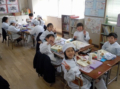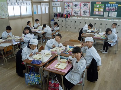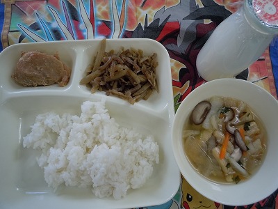 「きんぴらごぼう」は、豚肉も入っていました。意外ときんぴらゴボウは子どもたちに大人気のおかずです。おかわりもしてたくさん食べていました。