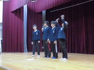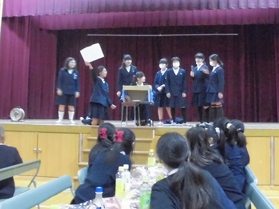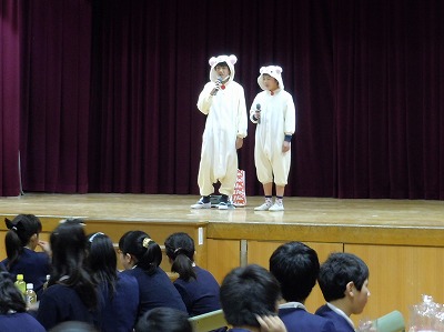 茶話会のスタートからハイテンションで、終始、笑いが絶えませんでした。普段見せない6年生の一面が見られ、とっても良かったです。でも、忙しい中、どこで練習をしてきたのでしょうか? とてもクオリティーの高い出し物でした。