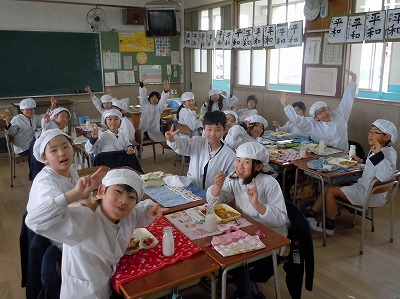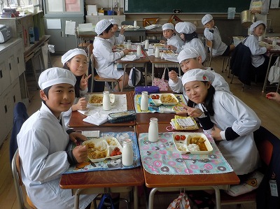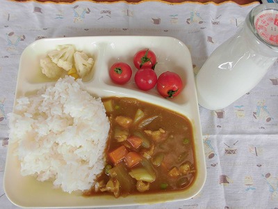 子どもたちの大好物の「カレーライス」ですが、1月12日以来、とっても久しぶりに登場です。前回は「ポーク」でしたが、今回は「チキン」です。3時間目ぐらいから、とってもいいカレーのにおいがしてきて、子どもたちも待ち望んでいました。じゃがいも、ニンジン、玉ねぎとお野菜もたっぷりです。ニンニクの風味も聞いています。