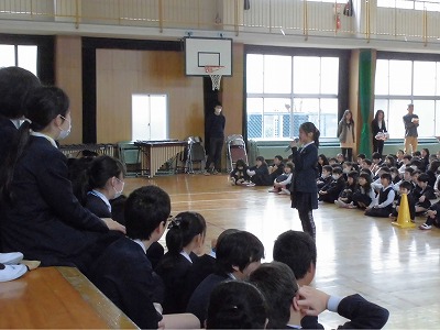 下:それを受け、6年生の代表の児童さんが、在校生と教職員に対して「感謝の言葉」を言いました。