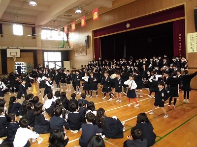 上:各学年からの発表です。1年生は、元気よくかわいく、「宇宙人ダンス」です。