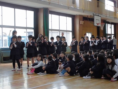 下:3年生は、2クラスがいない中、1クラスでとってもがんばってくれました。「ミッキーマウス・マーチ」をリコーダーで演奏です。