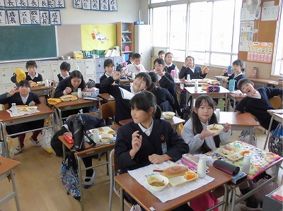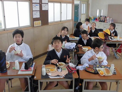 「味噌きしめん」は、麺は名古屋名物のきしめんです。お出汁も赤味噌・八丁味噌が使われていて、本格的でした。おいしかったのですが、子どもたちにはちょっぴり味が濃かったかもしれません。でも、大好きな麺類です。しっかり完食です。