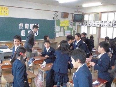 途中、英語での伝言ゲーム(英語では telephone game)をはさんだりと、楽しい授業でした。