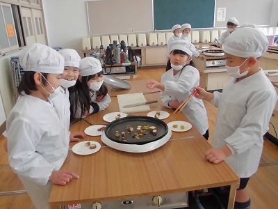 2年生は今日、午前中に1組と2組、午後に3組が「おいもパーティー」を行いました。