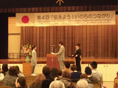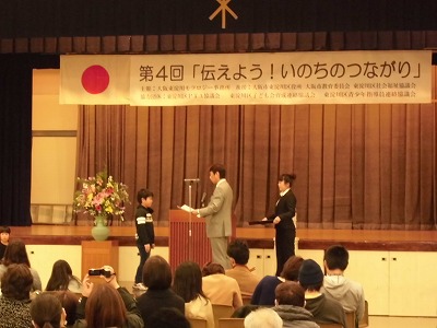 今日、東淀川区民ホールで「第4回 伝えよう! いのちのつながり」作文の表彰式がありました。