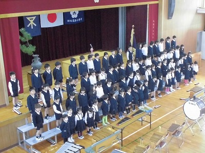 春休みで少し期間が開いていましたが、おむかえのことば、歌、演奏、すべてうまくいきました。校歌も大きな声で歌ってくれていました。