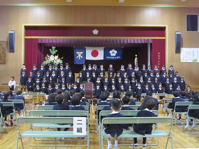 新2年生も、多くの方々が見守る中、緊張もありましたが、立派に「おむかえのことば」を披露することができました。