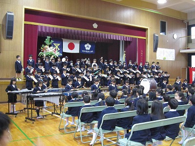 よびかけ、歌、校歌の紹介、6曲メドレーの合奏、とても素晴らしかったです。