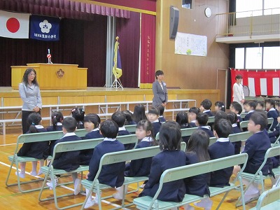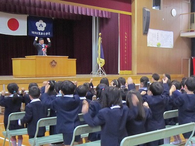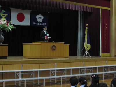 また、式中では、1年生はとってもお行儀よく、しっかりと校長先生やPTA会長様のお話を聞くことができました。「マッスル」も早く覚えてくださいね。