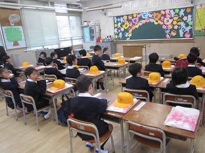 笑顔いっぱい、元気いっぱい、ピッカピカの1年生でしたが、教室前での受付が終わり保護者の方と離れて、一人教室での待機では、少し不安気な顔にもなっていました。