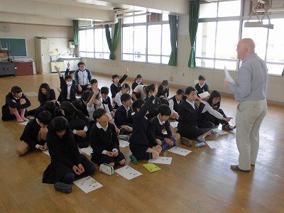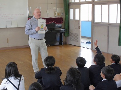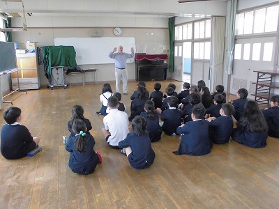 5・6年生の外国語活動に新しい先生が登場 (4月11日)
