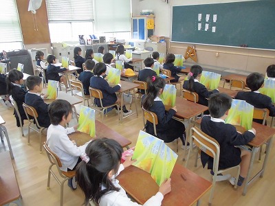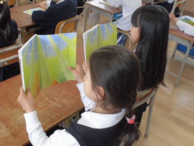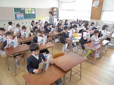 きちんと教科書を持ち、姿勢も正して、先生の後に続いて大きな声で読めていました。