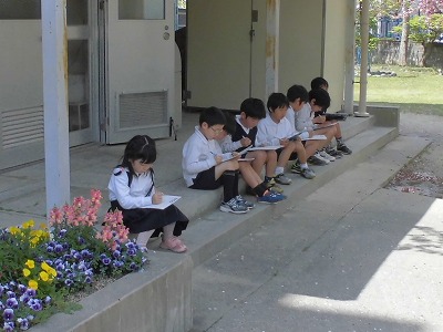 春らしいお花(植物)をいくつか探し、それをていねいにスケッチしていきます。