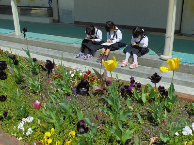 チューリップやパンジー、マーガレットなどの花を描いていました。