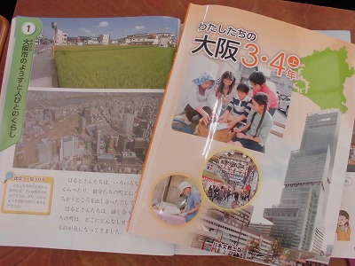 3年生よりスタートした「社会」ですが、教科書は2種類使います。一般的な教科書と、大阪を中心に学んでいく「わたしたちの大阪」という教科書を並行して学んでいきます。