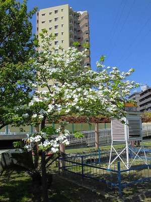 上新庄の駅前には「ハナミズキ通り」がありますが、豊新小学校にも「ハナミズキ」の木が1本だけあります。
