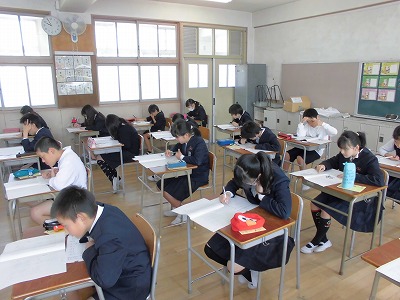予定通り、1時間目にガイダンスと個人番号票の記入、2時間目に国語Aと算数A、3時間目に国語B、4時間目に算数B、昼食をはさんで、5時間目に児童質問紙を実施しました。