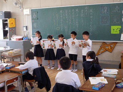 このクラスでは6班編成とし、班ごとに読むパートを決めて、教室の前に出て朗読の発表をしていました。