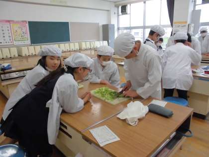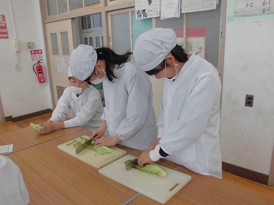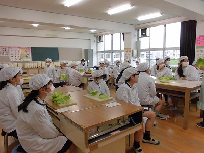 ゴールデンウィーク明けに調理実習を行う予定で、今日はそのプレで、「キャベツの千切り」を行いました。