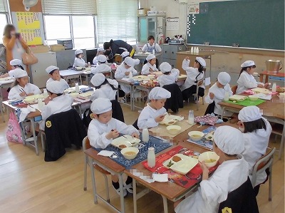 1年生は「給食参観」で、お着替えから準備、配膳、楽しい食事風景、後片付けのすべてを見ていただきました。