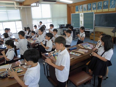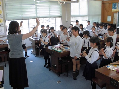 やっと、リコーダーを学習している場面に出会えました。