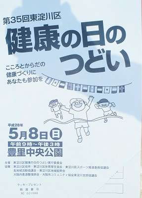 本日、5月8日(日)、朝から絶好の五月晴れの中、「第35回東淀川区健康の日の集い」が、豊里中央公園で開催されました。