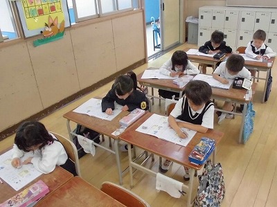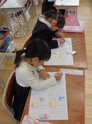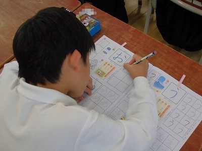 ひらがなの練習です。このクラスでは、今日は「さ」「き」「お」を学習していました。