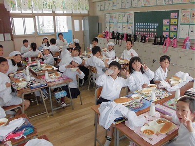アーモンドフィッシュは、けっこう子どもたちも好きで、クラスで余ることはめったにありません。小魚を頭からボリボリと食べています。