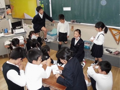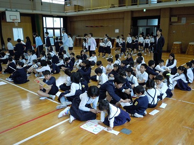 編成は、全17班編成で、1班(約30人)をさらにA・Bの2グループ(約15人ずつ)に分けています。各班には6年生を中心にリーダーと副リーダーをおき、今日は、自己紹介、班のめあて(目標)決め、集会時の並び方などをしました。