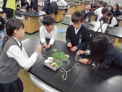 今日は、「種子の発芽と養分」の学習でした。発芽に使われる養分(でんぷん)がどこにあって、その養分が使われてでんぷんが減少することを「ヨウ素液」を用いて観察していました。