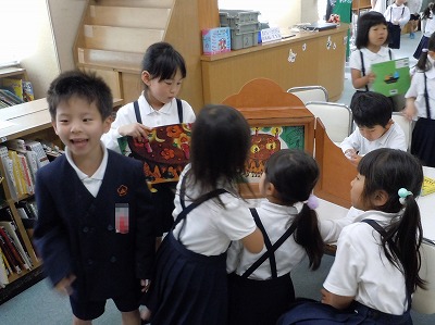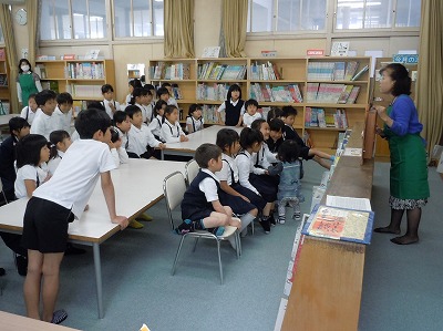 2時間目の授業が終わると、たくさんの子どもたちが図書室に集まってきました。