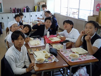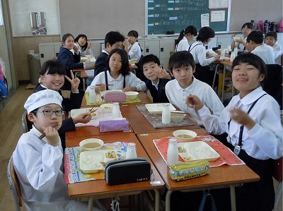 みそ汁は、タマネギ、キャベツ、もやし、にんじん、白ネギに、今日は大根の葉が入っていました。みそは赤みそと白みその合わせみそです。
