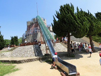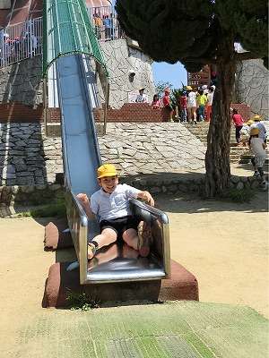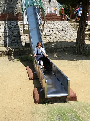 金属製のかなりスピードの出る滑り台にも挑戦です。